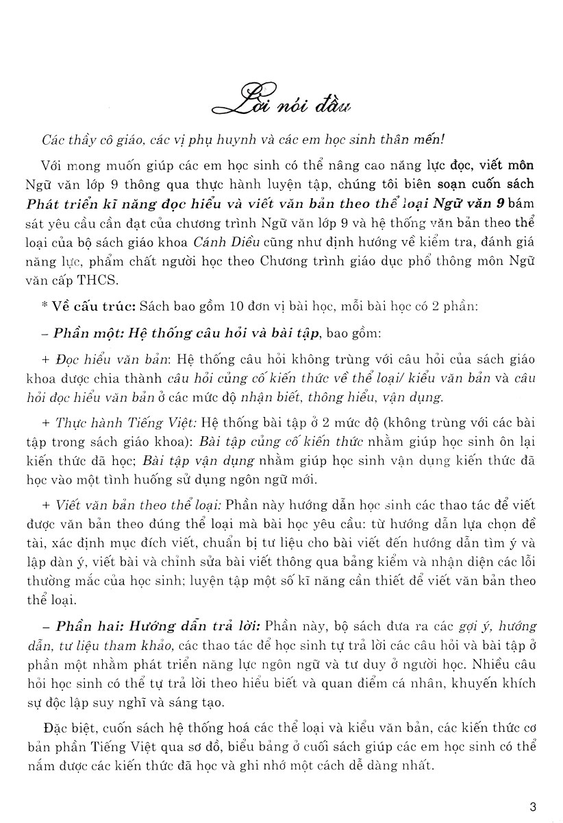 Phát Triển Kĩ Năng Đọc - Hiểu Và Viết Văn Bản Theo Thể Loại Ngữ Văn 9 (Bám Sát SGK Cánh Diều)