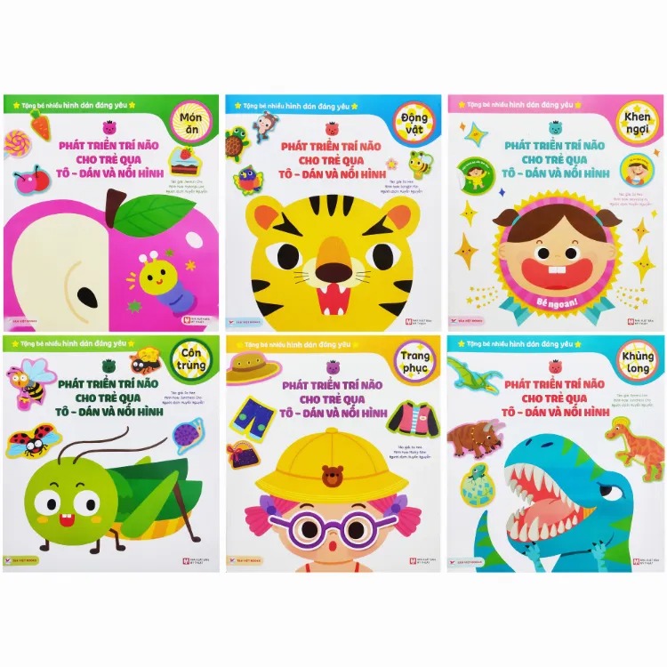 Bộ Phát triển trí não cho trẻ qua tô-dán và nối hình gồm 6 chủ đề: