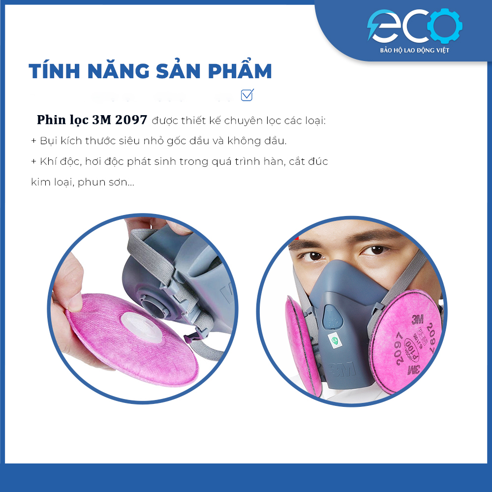 Mua tại TiktokPhin lọc 3M 2097 sử dụng phòng chống được các loại khí độc, khói hàn, sử dụng trong nhiều môi trường gồm hàn, hàn đồng, cắt ngọn, đổ kim, hàn và tiếp xúc với chì, amiăng, cadmium, asen, và MDA cho nồng độ lên tới 10 lần giới hạn phơi nhiễm cho phép (PEL) THÔNG SỐ PHIN LỌC 3M 2097