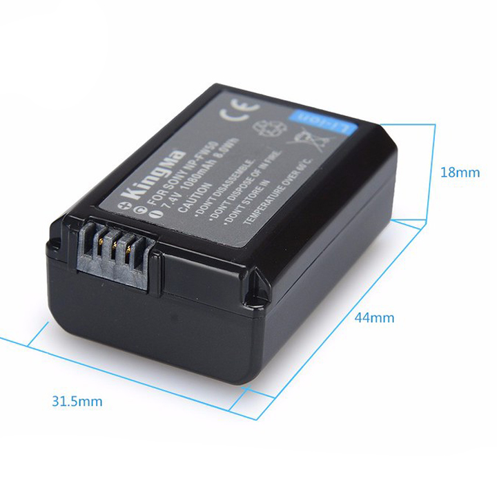 Pin máy ảnh Kingma cho Sony NP-FW50 Thông tin sản phẩm: Pin Kingma for Sony NP-FW50 -Model: NP-FW50; -Điện áp 7.4V; -Công suất: 1080mAh 8.0Wh; -Loại pin: Pin Li-ion; -Kích thước: 45 * 31,9 *