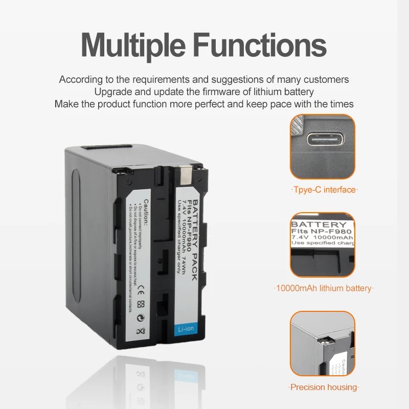 ✨Pin NP-F980 7.4Wh 10000mAh Cho Sony PLM-100 CCD-TRV35 MVC-FD91 MC1500C Cổng TypeC - Hàng Nhập Khẩu