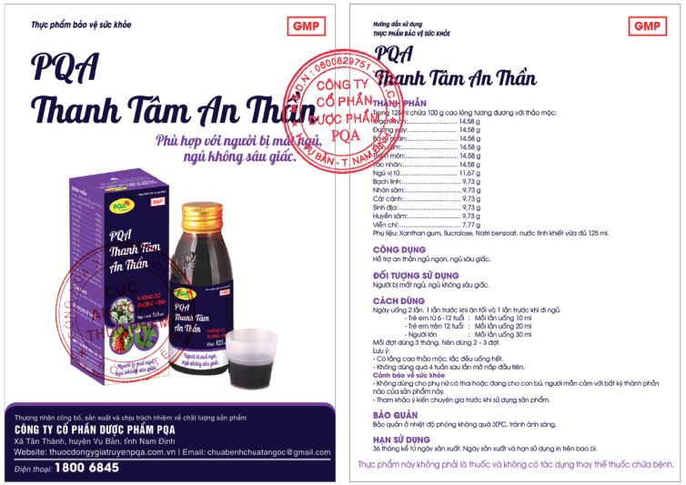 THÔNG TIN PQA THANH TÂM AN THẦN PQA Thanh Tâm An Thần là dược phẩm hỗ trợ giúp an thần ngủ ngon, ngủ sâu giấc cho người bị mất ngủ, thiếu ngủ, không ngủ sâu giấc.