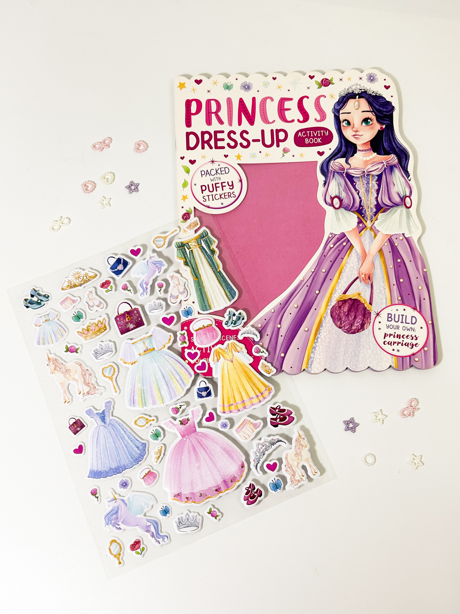 Princess Dress-up allows readers to design outfits, dress princesses and build their own princess carriage.