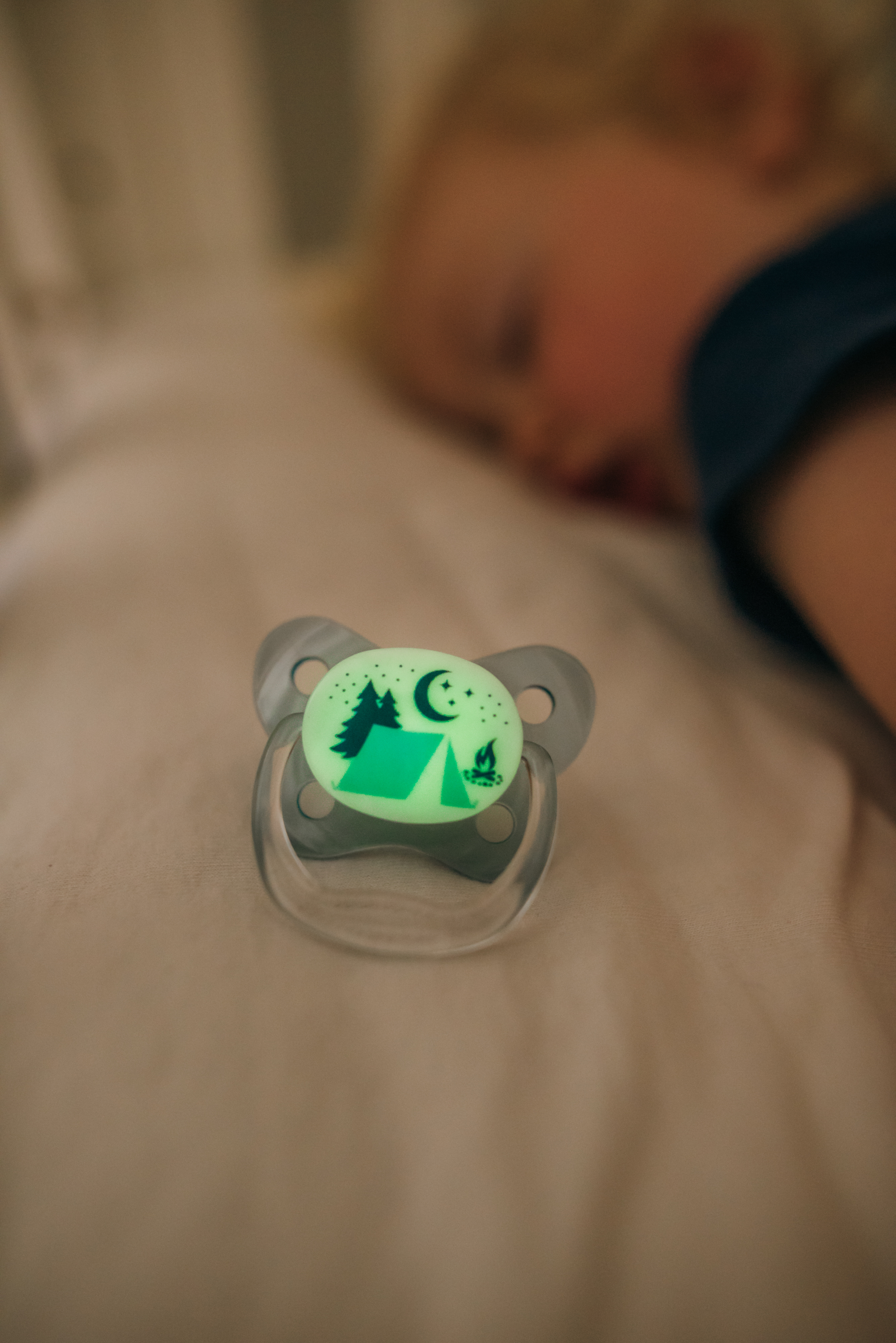 - Ty ngậm sẽ phát sáng trong bóng tối giúp mẹ dễ dàng tìm thấy khi cần