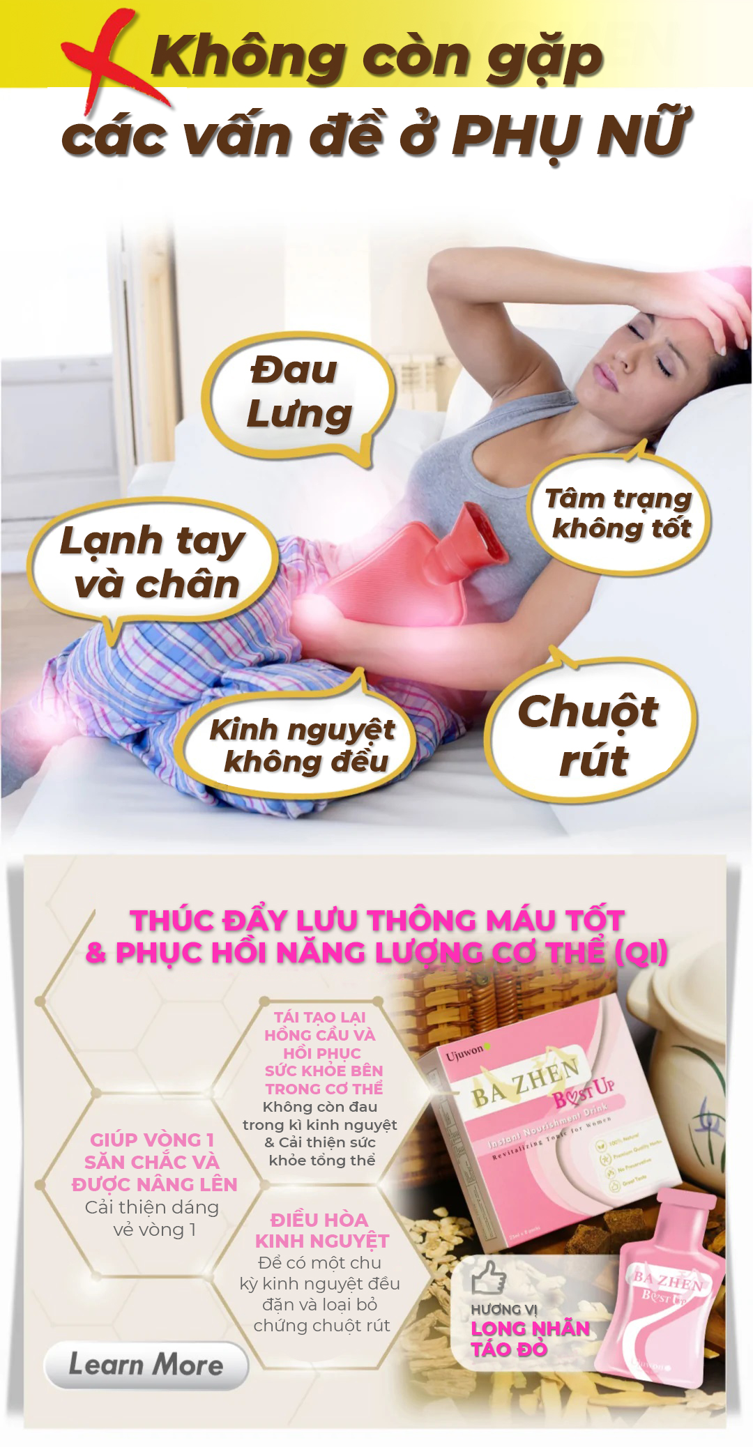 ✨[QUÀ 20.10] Nước Uống Thảo Mộc Giảm Đau Bụng Kinh Hiệu Quả, Tăng Kích Cỡ Vòng 1, Thon Gọn Sắc Vóc Ba Zhen Ujuwon Bust Up (Hộp 8 Gói)