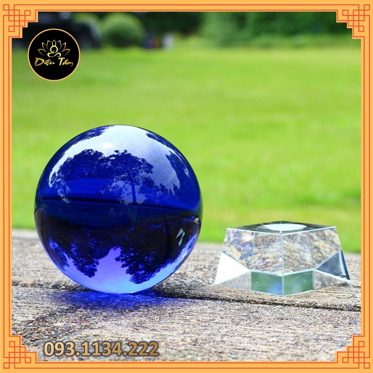 Quả cầu phong thủy pha lê màu xanh lam size to 15cm hợp mệnh Mộc, mệnh Thủy đồ phong thủy trang trí