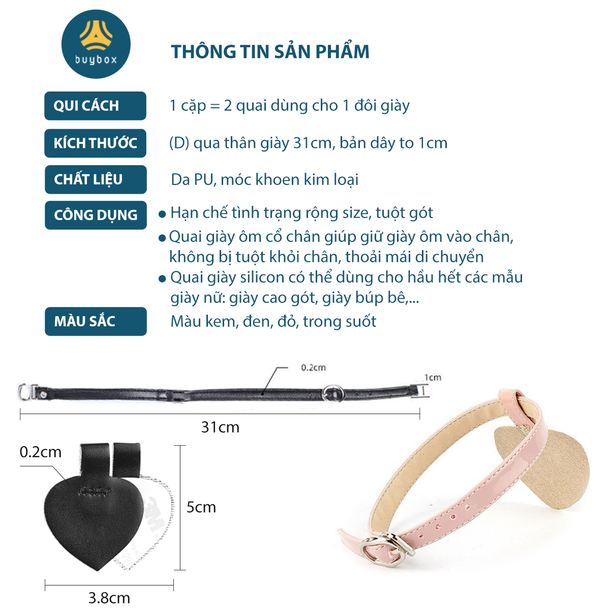 + CÔNG DỤNG - Giúp chống tuột gót, chống trầy gót sau và giảm size giày . - Sản phẩm thiết kế 4D nên ôm trọn phần lõm sau mắt cá chân - Sản phẩm