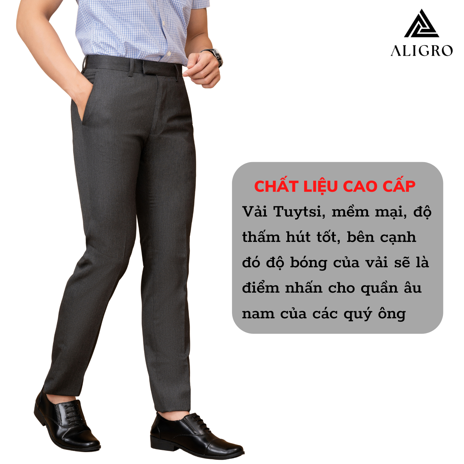 ✨Quần âu nam ALIGRO thiết kế dáng quần ôm không ly, tôn dáng, màu ghi Algo8004