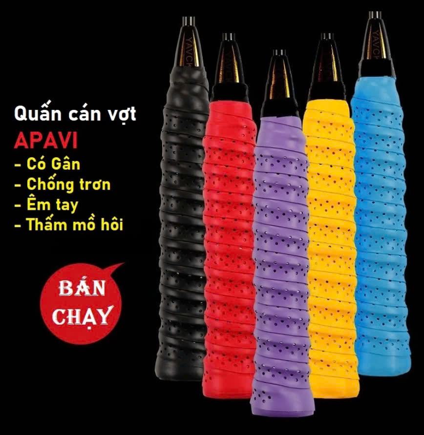 - Dán cố định quấn cán vợt bằng băng keo APAVI