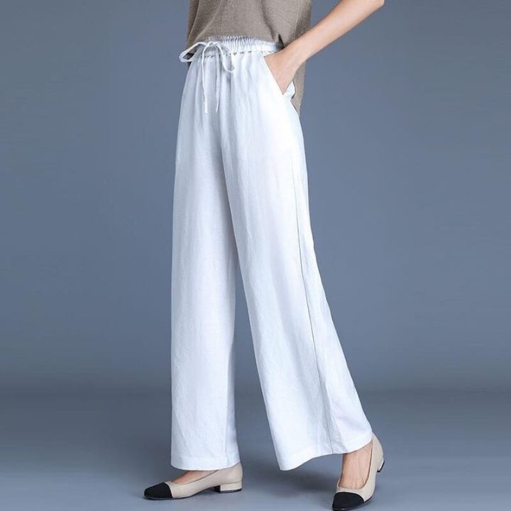 THÔNG TIN SẢN PHẨM: - Sản phẩm: Quần dài nữ - Chất liệu: Linen - Đặc điểm: Ống rộng, Đũng ngắn, Lưng thun - Kích thước: M, L, XL, 2XL - Màu sắc: Trắng,Đen,Be,Muối