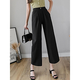 - Chất liệu: Cotton - Thiết kế: Quần tây ống rộng với lưng cao, đường may tỉ mỉ, ít nhăn. Thiết kế thanh lịch, tôn dáng và tạo cảm giác thoải mái khi mặc.