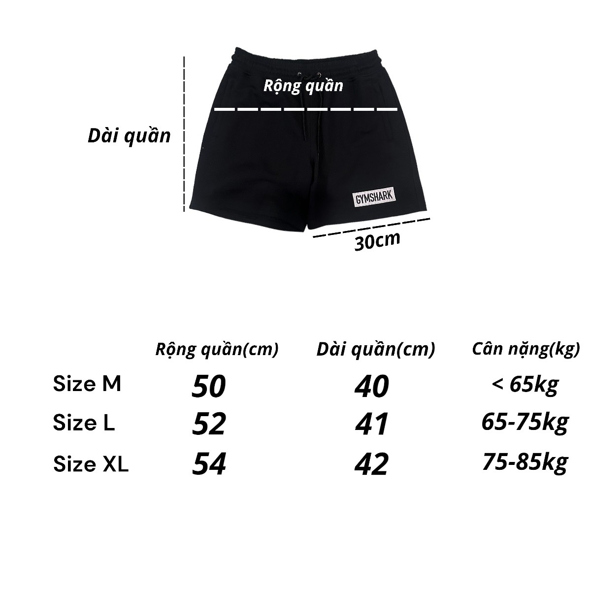 - XL 75~ 85kg < 1m85 => Khách cần tư vấn size vui lòng inbox. Lưu ý cho quần đùi nỉ tập gym nam DOGYMSHOP: