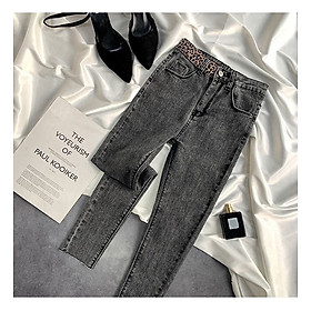 Quần jeans nữ lưng cao ôm cách điệu phân nịt họa tiết da beo cá tính cạp cao lưng cao , ống ôm sát kiểu bút chì tôn dáng , mặc rất thoải mái với