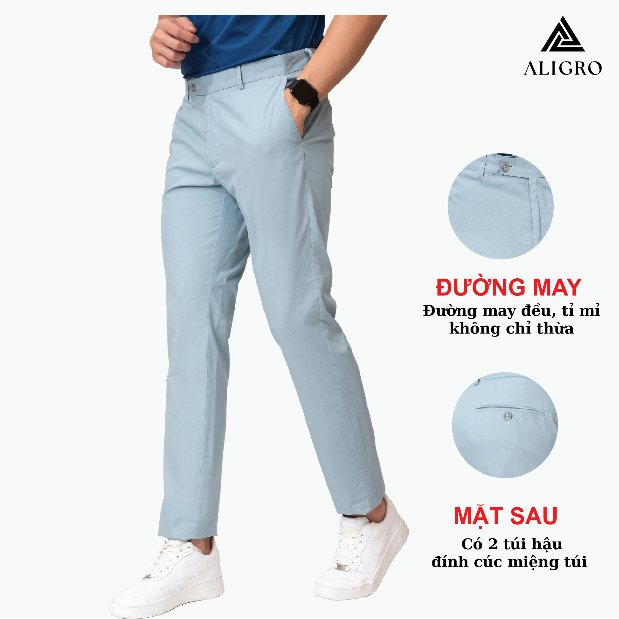 Mua tại Tiktok- GIỚI THIỆU THƯƠNG HIỆU Mang trong mình tầm nhìn chiến lược trở thành thương hiệu “Thời trang nam được yêu thích nhất Việt Nam” nên Aligro luôn chú trọng nghiên cứu phát triển mẫu mã, phom dáng phù hợp với vóc dáng hình thể đàn ông Việt. Sản phẩm của chúng tôi mang tới hình ảnh trẻ trung, năng động, hiện đại mà không kém phần lịch sự, sang trọng - cam kết mang lại giá trị đích thực và một cuộc sống thịnh vượng hơn cho phái mạnh Việt. CHI TIẾT THIẾT KẾ QUẦN KAKI NAM ALIGRO