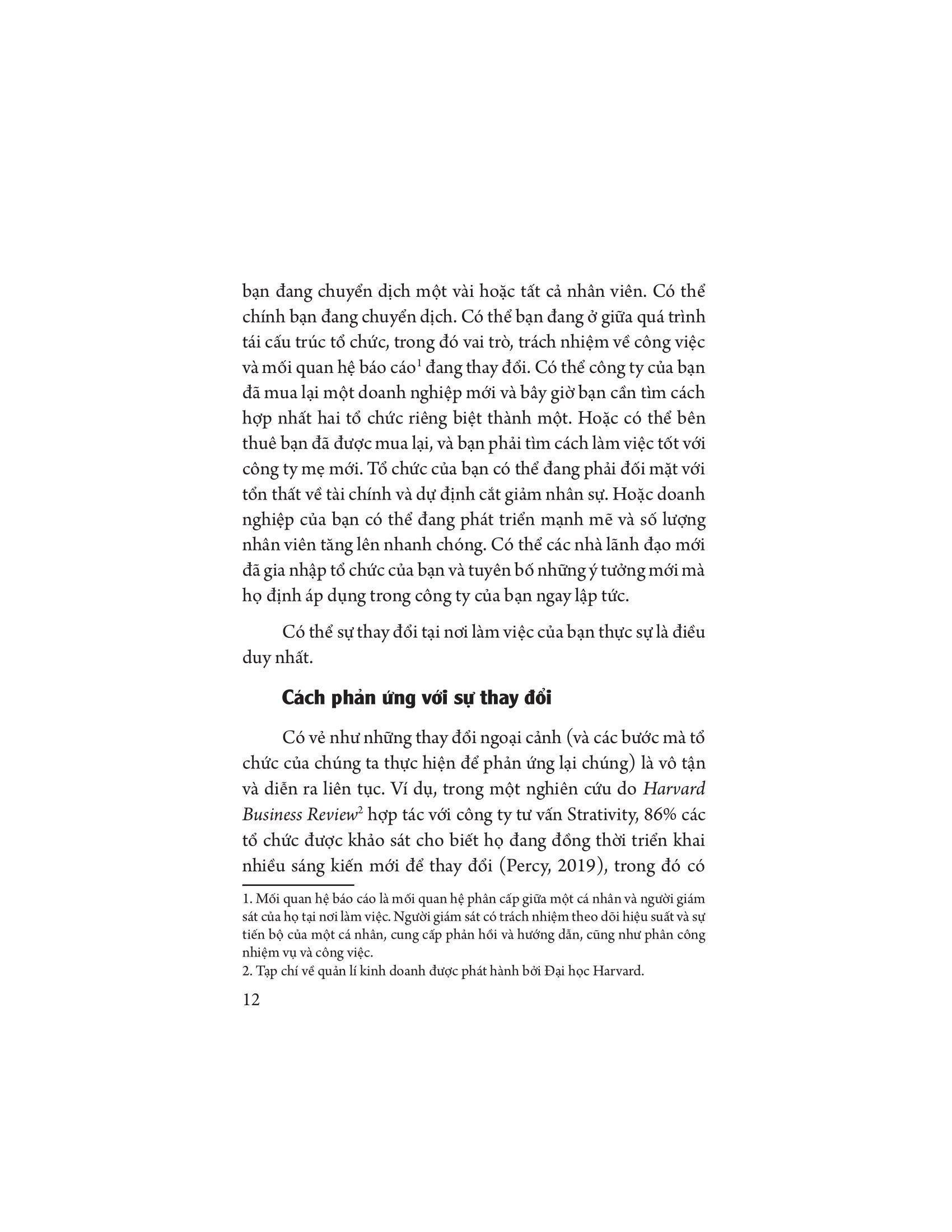 Trong công việc, và có khi cả trong đời sống cá nhân, chúng ta đều nghe người khác nói rằng chỉ có sự thay đổi là bất biến. Chúng ta đang sống trong một thế giới thiên biến vô cùng, được đặc trưng bởi sự biến động, không thể lường trước. Song rất nhiều lần, những nỗ lực thay đổi của chúng ta lại không đạt được mục tiêu mong muốn. Khách hàng rời đi, có khi còn nhiều hơn trước. Năng suất vẫn như cũ, thậm chí còn sụt giảm. Chúng ta cố gắng tìm hiểu chuyện gì đã xảy ra, m.ình đã bỏ qua điều gì, và chúng ta được bảo rằng kết quả không như mong muốn cũng là chuyện thường tình. Đôi khi những thay đổi ấy có hiệu quả, đôi khi lại không.
