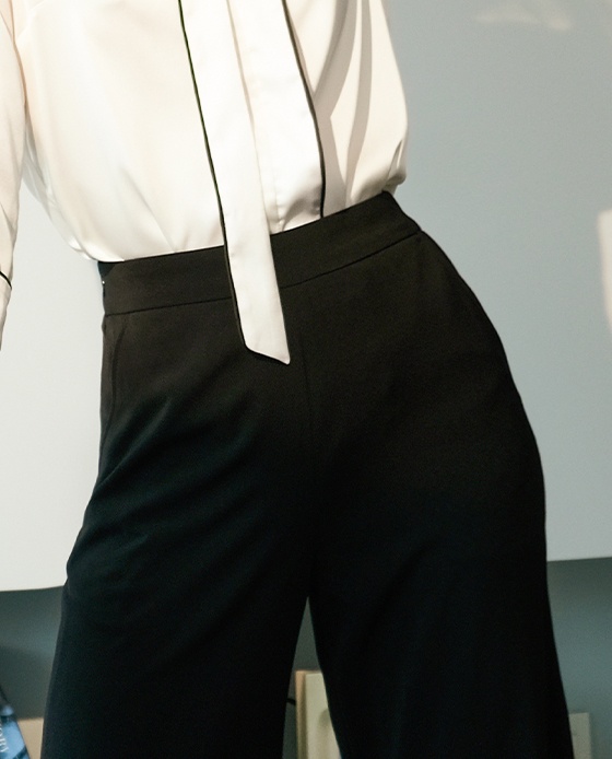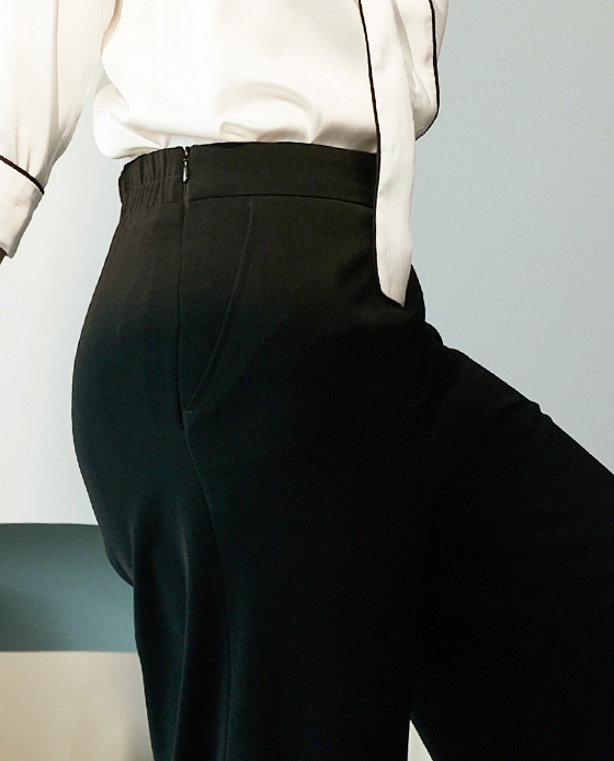 - kiểu dáng quần ống suông - lưng cao, bảng lưng 6cm, cài bằng dây khóa kéo bên hông - đặc biệt nổi bật dù trên nền trắng