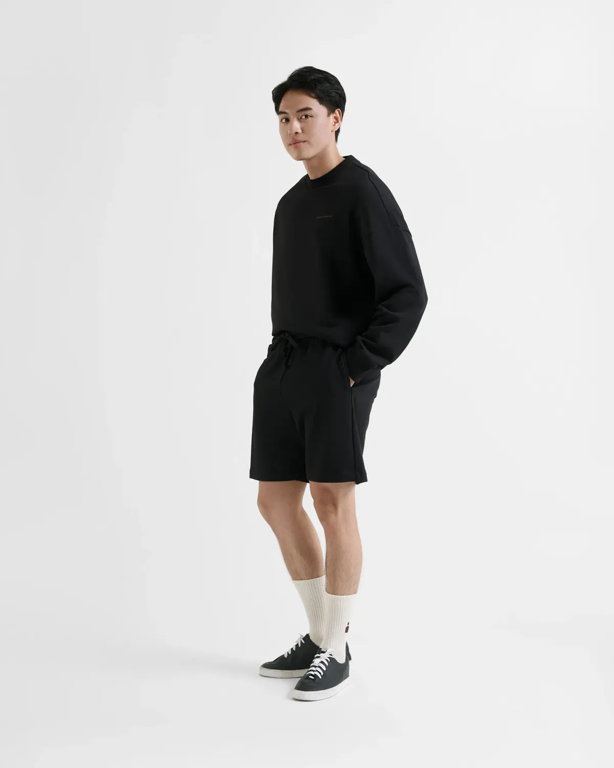 Quần Short Vải texture Lưng Thun Dây Rút Trơn Form Loose - RT 10S25PSH051 | ROUTINE CÀ MAU Đặc điểm nổi bật Form : Relax Fabric : Cotton Gender: Nam Collection: Essential 25 Thông tin