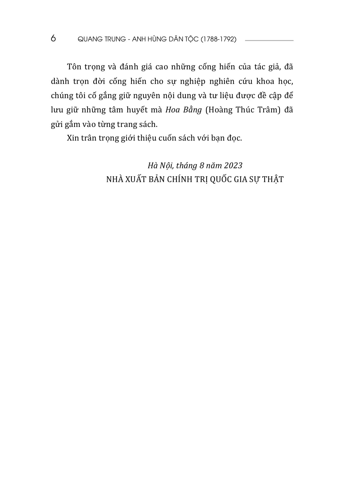 Cuốn sách góp phần truyền đạt thêm nhiều thông tin chính xác và những bài học bổ ích cho bạn đọc quan tâm, đặc biệt là các thế hệ trẻ đang kế tục gánh vác