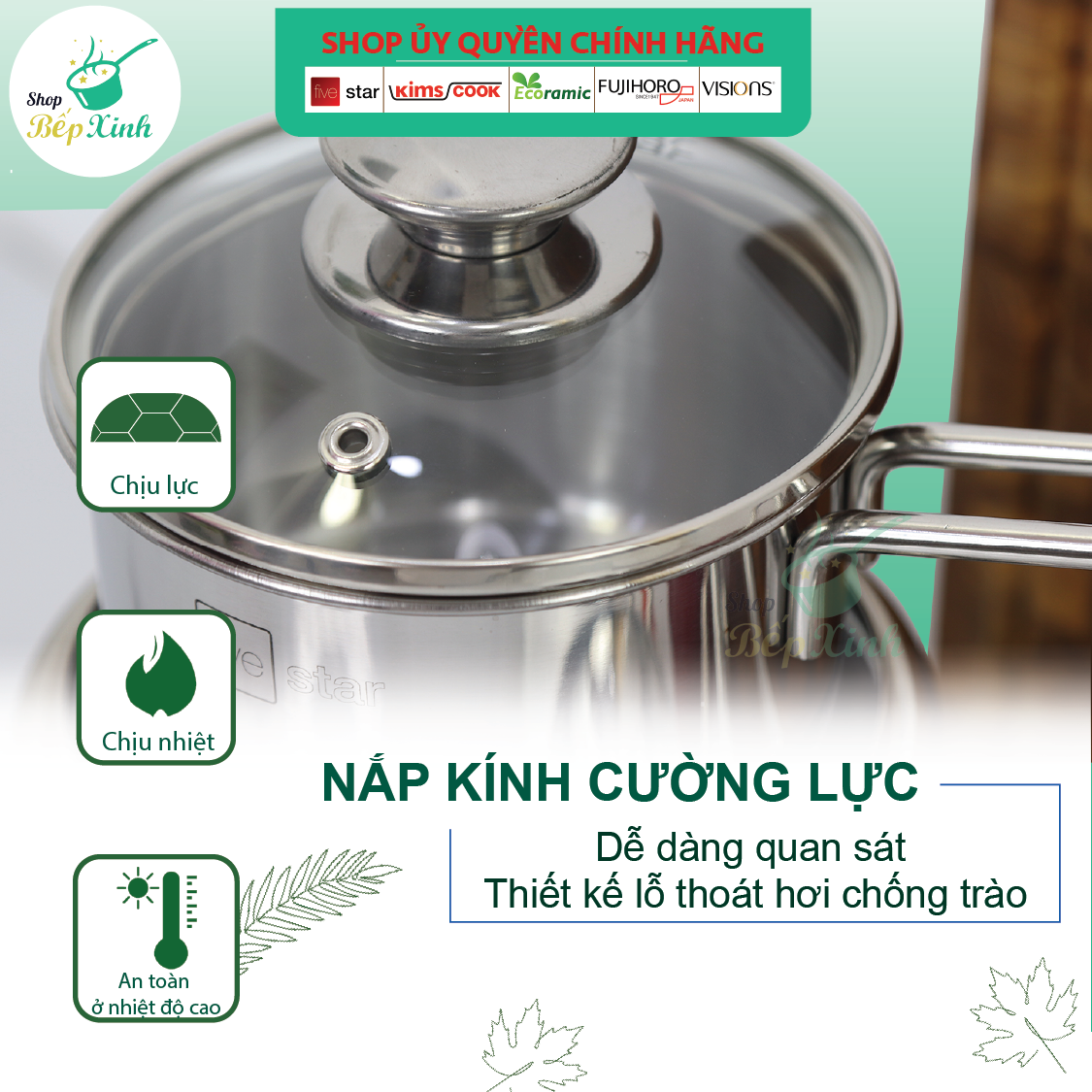 Quánh nấu bột Inox 3 đáy đường kính 12cm Fivestar nắp kính dùng bếp từ - Zalo 0816 505 655