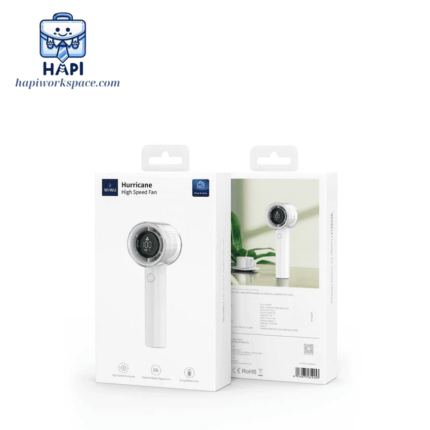 THÔNG TIN CƠ BẢN - Thương hiệu: WiWU - Model: Wi-FS012 - Năm sản xuất: 2025 - Loại quạt: Quạt cầm tay mini - Kích thước: 13.6 x 6.7 x 4.9 (cm) - Khối lượng: 90 gram - Chất liệu: ABS -