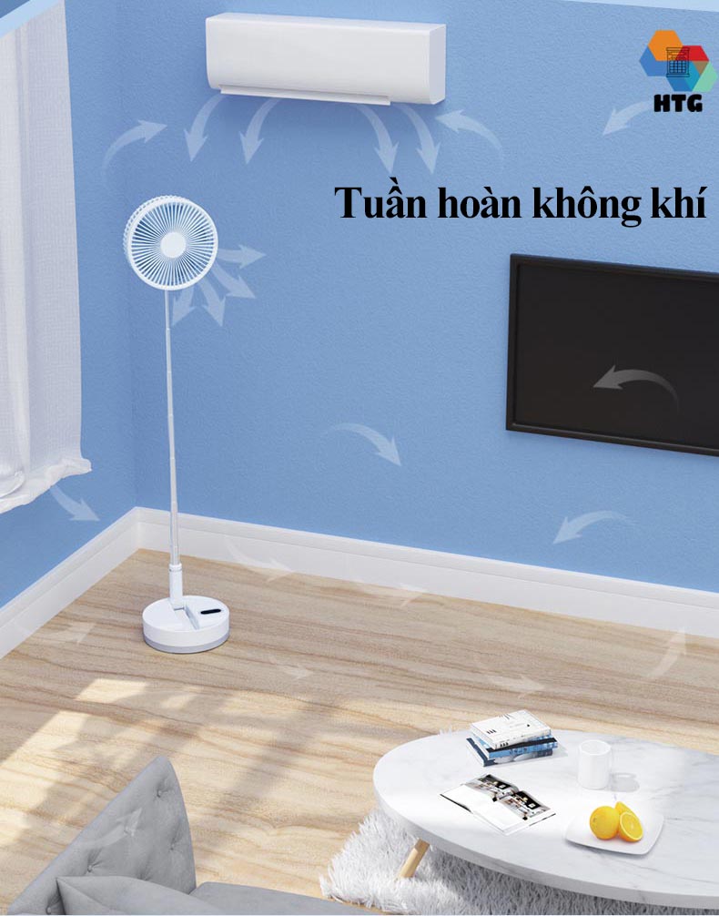 Quạt không dây, gấp gọn 7 cánh thế hệ mới, tự động xoay và điều chỉnh góc quạt 180 độ