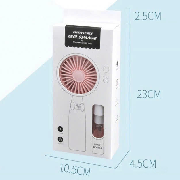 Cái nắng ngày hè đã đến hãy sắm ngay chiếc quạt năng lượng thần thánh này với xây cất lạ lùng hình tai thỏ, tai gấu, tai mèo ngộ nghĩnh, rất có thể để mặt bàn hay cầm mang đi mọi chính nơi đây bạn muốn. Với cơ cấu 7 cánh cho vận tốc gió mạnh hơn, nhiệt độ thấp hơn biết bao khi dùng.   Quạt phun sương mini bao gồm 7 cánh cần thả vận tốc gió mạnh hơn sẽ hỗ trợ bạn giải phóng nhiệt độ, tạo hiệu ứng cực kì thoải mái và dễ chịu dễ chịu. Kích thước quạt : 83 x 46 x 185mm, dùng sức điện input DC5V quan chân sạc micro usb, hoàn toàn có thể sạc chung với những dòng laptop android. Hiệu suất của quạn Mini khoảng 0,6 - 3W ứng với điện áp Output đầu ra 5V- 12V. Quạt mini hoàn toàn có thể xách tay hay để trên bề mặt bàn, tải trọng và kích tấc nhỏ giúp đỡ bạn thoải mang theo theo người ở mọi địa điểm mọi lúc. Quạt có 3 mẫu dễ thương và sắc màu sự khác biệt như: Tai thỏ, tai mèo, tai gấu.   Chất Liệu : ABS Kích Thước đóng hộp : 23 10.5 4.5cm Sạc Pin : Ổ Cắm Micro USB Thời Gian năng lượng : 6 Tiếng Công Dụng : Quạt  Mẫu Quạt : Mèo - Thỏ - Gấu pin dùng của quạt lên đến mức 6 tiếng Quạt Mini có tác dụng năng lượng và hoàn toàn có thể phun độ ẩm ở phần bên trước bằng sự phối hợp 1 bình nhỏ đựng nước ở phía đằng sau phối hợp cả hai tác dụng lại thì chiếc quạt thần thánh này được đa số chúng ta trẻ yêu thích.   Ngoài ra bạn rất có thể sạc trải qua cục sạc dự phòng   Tiện sử dụng khi đưa theo học, đi chơi, đi tàu