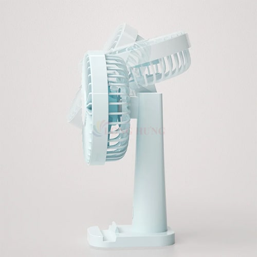 - Thiết kế cực kỳ đặc biệt khi có giá đỡ điện thoại đi kèm ngay trên chân quạt.