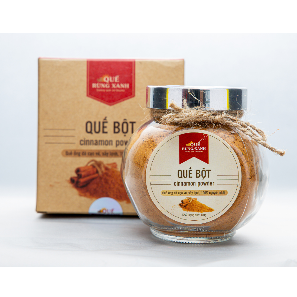 Mua tại TiktokBột quế tạo ra từ vỏ của cây quế khi đã xay nhuyễn, thơm và giữ được mùi hương lâu, được làm từ 100% bột quế nguyên chất từ rừng Trà Bồng Quảng Ngãi. Theo Y học cổ truyền, Quế được ví như Sâm trong Tứ Đại Danh Dược bao gồm: Sâm - Nhung - Quế - Phụ. Với truyền thống lâu đời trong lĩnh vực thuốc nam - Hơn 30 năm kinh nghiệm kinh doanh quế ở phố Đông y Sài Gòn, lần đầu tiên Quế Rừng Xanh mang giá trị cây quế đến với người tiêu dùng một cách tiện lợi nhất bằng cả tâm huyết của mình.
