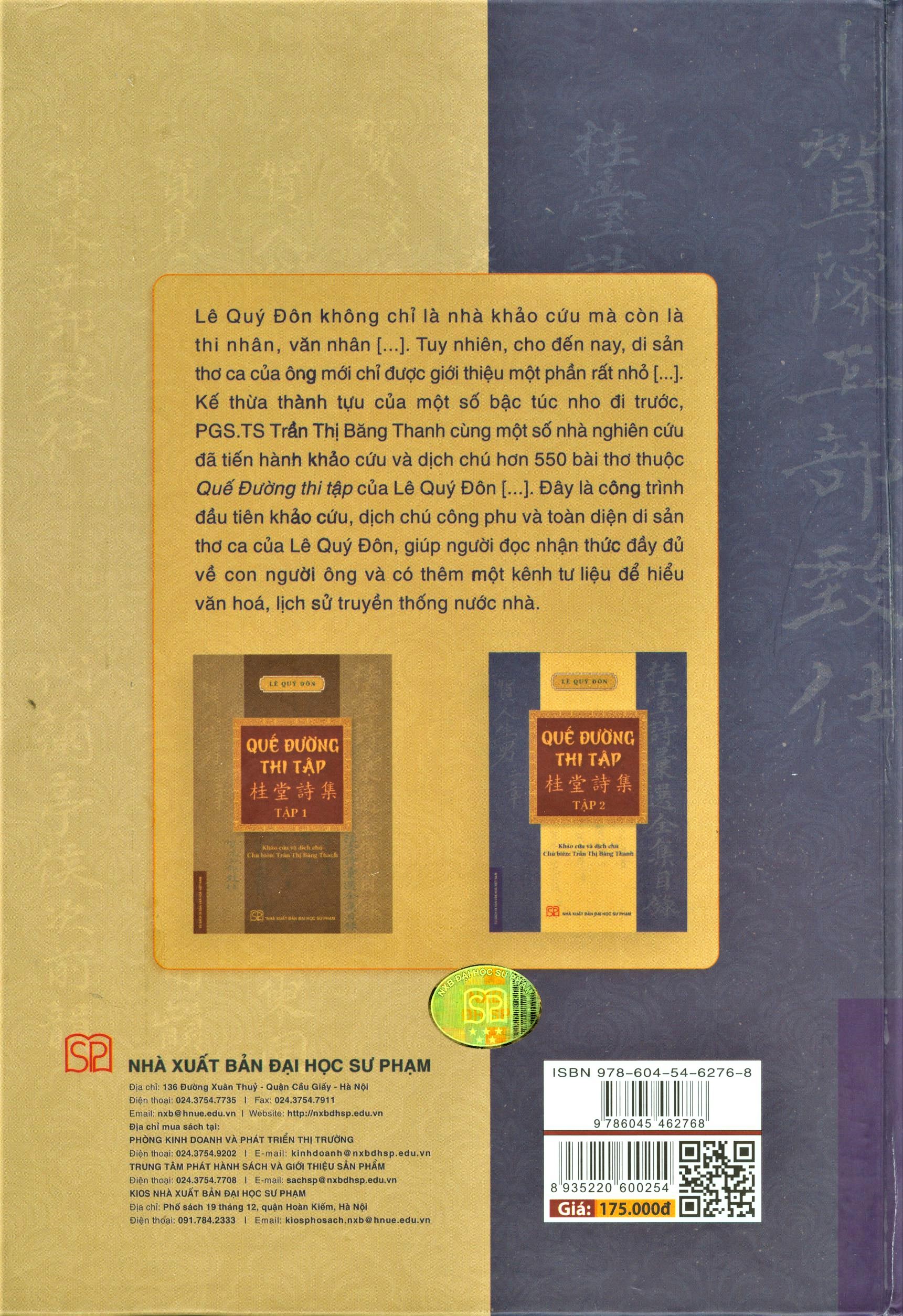 Quế Đường Thi Tập - Tập 2 (Bìa cứng)Năm 1740, Lê Phú Thứ được phục chức, Lê Quý Đôn theo cha về Kinh đô, được học ở những ngôi trường nổi tiếng, ba năm sau ông thi Hương và đã đỗ Giải nguyên, nhưng r...