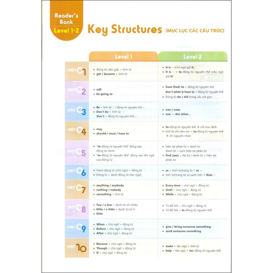 • Reader’s Bank gồm các level từ 1 đến 9, phù hợp với các em học sinh từ lớp 3 đến lớp 12 (có trình độ tiếng Anh tương đương A1 đến B1)