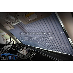 Rèm che nắng kính lái ô tô loại kéo, để bên trong kính ô tô Chất liệu rèm: Giấy nhôm cách nhiệt và Polime chống nóng. Khung được làm từ hợp kim nhôm cao cấp