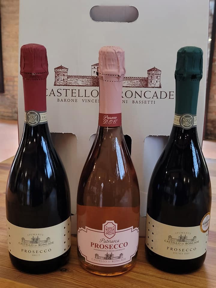 Rượu vang nổ,vang sủi tăm Castello di Roncade Prosecco DOC Extra Dry (Italia/ Ý ) Spumante DOC Treviso.Rượu vang đạt tiêu chuẩn Denominazione di Origine Controllata (DOC).1 trong 3 thang điểm của rượu Ý. Prosecco