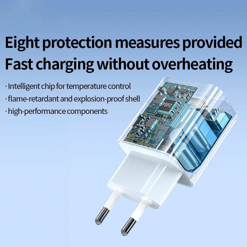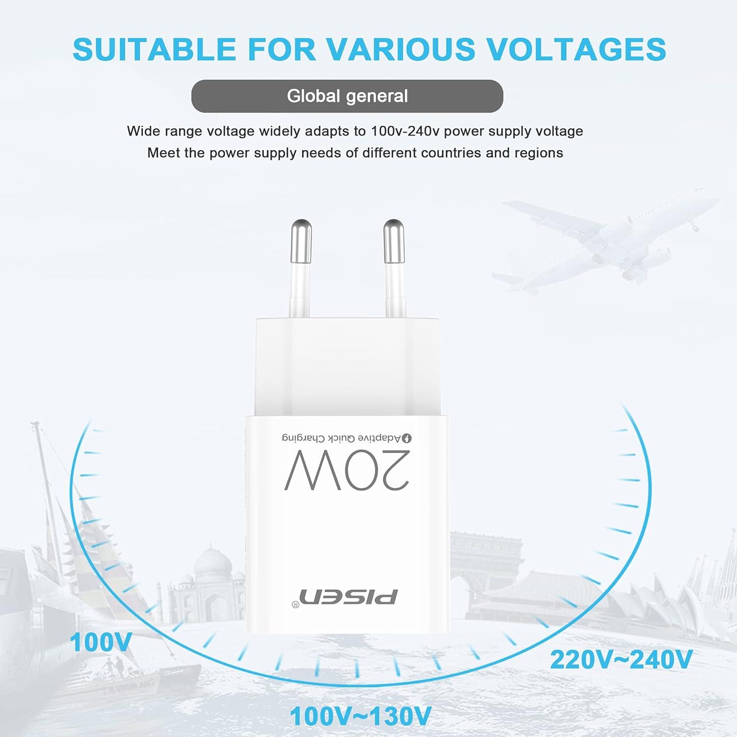 - 20W USB TYPE C Charger 5V-3A 9V-2.22A 12V-1.5A PD Certification EU Plug fast charging charger For iPhone 15 -> i8,…