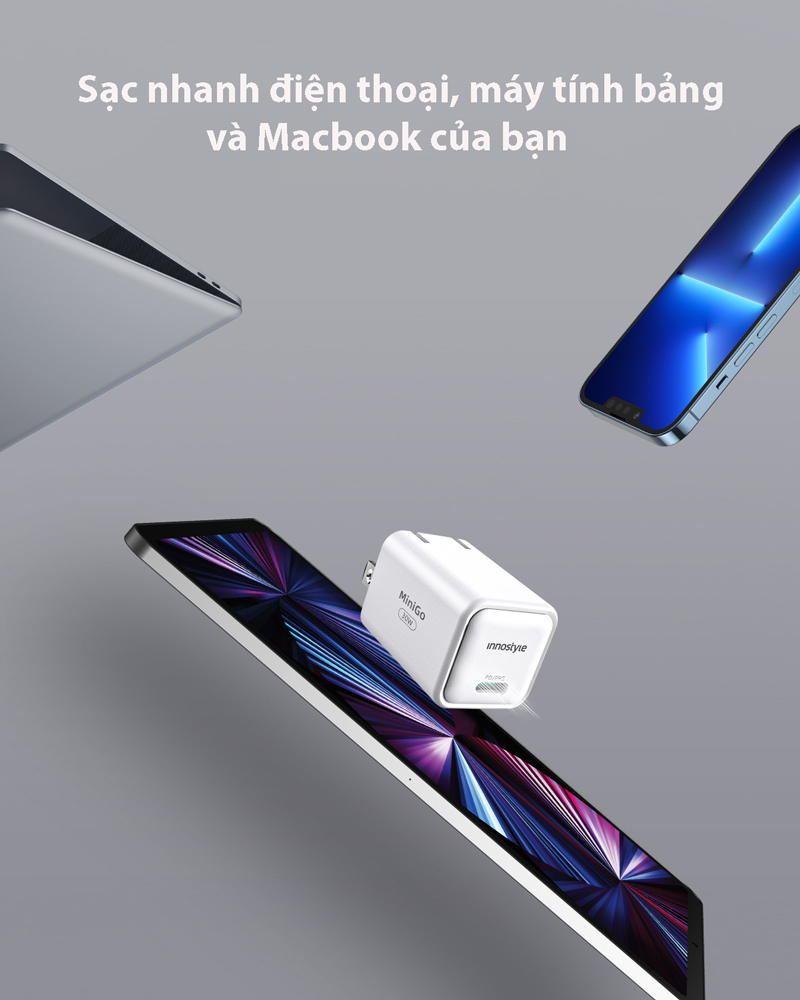 Sạc nhanh siêu nhỏ Minigo GAN II có thể sạc nhiều thiết bị vì có tốc độ sạc nhanh gấp 3 lần so với bộ sạc thông thường cho các thiết bị. Ngoài ra, Minigo GAN II còn giải phóng thêm không gian trong nhà hoặc văn phòng của bạn nhờ nâng cấp công nghệ GaN II không chỉ tăng hiệu quả năng lượng và công suất đầu ra lên 30W mà còn giảm kích thước 63%.
