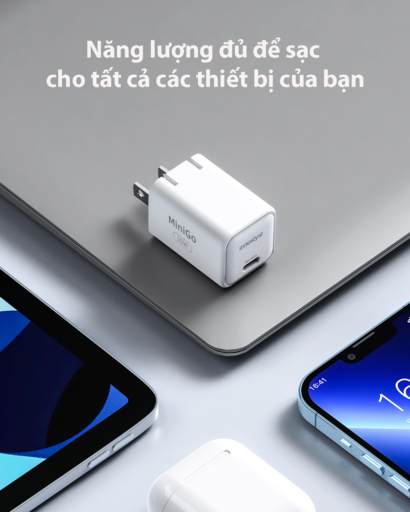 Sạc nhanh siêu nhỏ INNOSTYLE Minigo GAN II có khả năng tương thích USB phổ quát, với công nghệ Power Delivery và PPS, loại bỏ nhu cầu sử dụng nhiều bộ sạc – đơn giản hóa cuộc sống hàng ngày với chỉ một bộ sạc Minigo Gan II 30W để cung cấp năng lượng cho tất cả các thiết bị lớn và nhỏ của bạn.