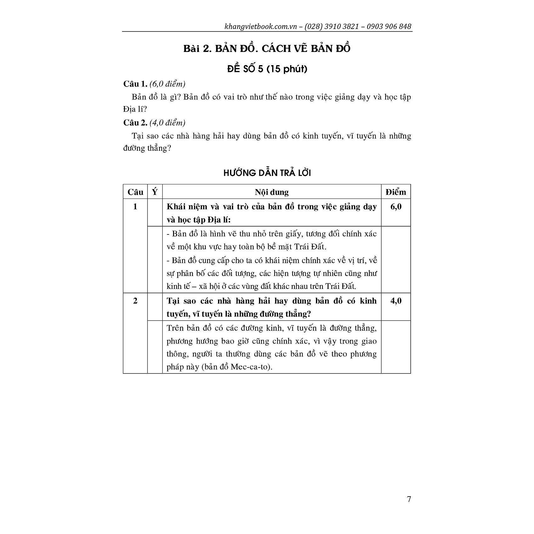 ✨Sách - 100 Đề Kiểm Tra Địa Lí Lớp 6 - Khang Việt Book