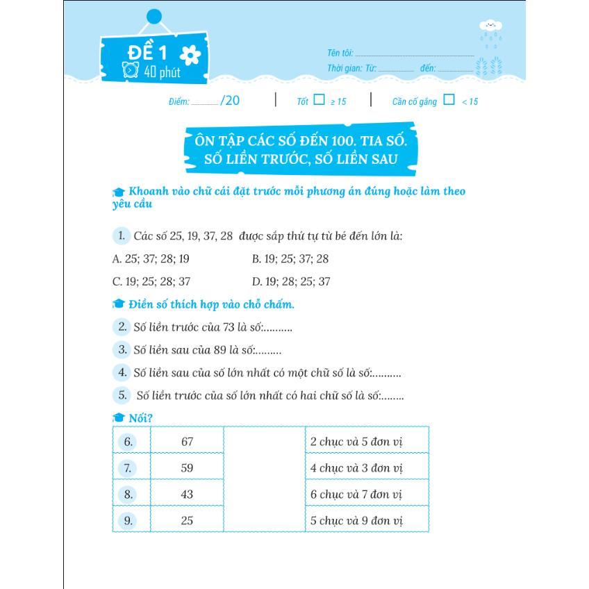 Mỗi đề luyện tập trong sách được thiết kế để ôn luyện toàn bộ kiến thức trong chương trình học lớp 2.