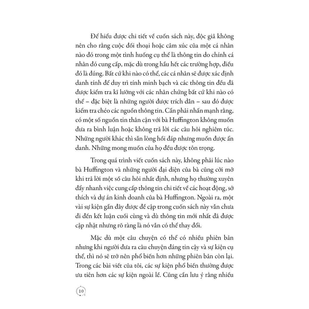 Bên cạnh cung cấp cái nhìn tổng thể về cuộc đời và sự nghiệp của Huffington, cuốn sách còn cho ta thấy những khía cạnh độc đáo khác về cá nhân Huffington. Bà là một nhân viên cực kì chăm chỉ và là một ví dụ xuất sắc về việc không để lời chỉ trích của những người khác làm mình thất vọng hoặc nản chí. Bà dường như tái tạo lại bản thân nhiều lần trong cuộc đời mình, mà theo như bà nói thì “Bạn là người đang cầm điều khiển. Chỉ cần thay đổi kênh thôi là tivi sẽ không phát tiếp bộ phim tồi tệ, đáng sợ kia nữa." Khả năng làm chủ bản thân, tự điều chỉnh bản thân để thích ứng với thế giới đang thay đổi này là điều kiện cần cho bất kì doanh nhân nào.