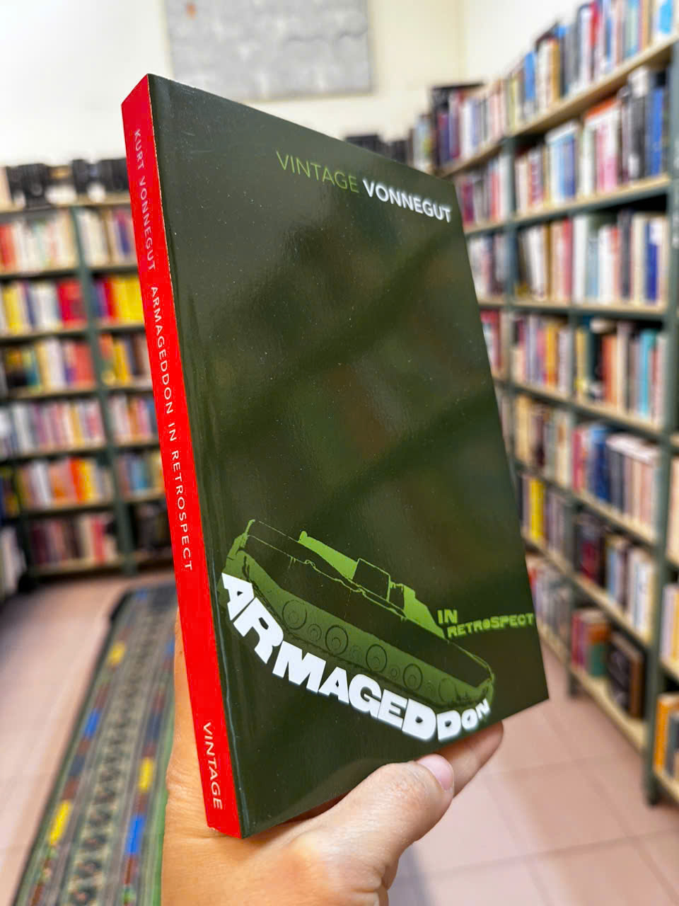 Bộ sưu tập đầu tiên và duy nhất các tác phẩm chưa được xuất bản của Kurt Vonnegut kể từ khi ông qua đời. Một lời tri ân xứng đáng dành cho tác giả và là một đóng góp thiết yếu cho cuộc thảo luận về chiến tranh, hòa bình và xu hướng bạo lực của nhân loại. Armageddon in Retrospect là một tuyển tập gồm 12 tác phẩm mới và chưa được xuất bản về chiến tranh và hòa bình. Mang đậm chất hài hước buồn bã đặc trưng của Vonnegut, các tác phẩm trải dài từ hồi ức phi hư cấu sâu sắc về sự tàn phá của Dresden trong Thế chiến thứ hai -- một tiểu luận vẫn hợp thời cho ngày nay cũng như thời đó -- cho đến một truyện ngắn buồn cười đến đau đớn về ba binh sĩ và những tưởng tượng của họ về bữa ăn đầu tiên hoàn hảo khi trở về nhà sau chiến tranh, đến một câu chuyện đen tối hơn, thấm thía hơn về việc không thể che chắn cho con cái chúng ta khỏi những cám dỗ của bạo lực. Ngoài ra còn có bài phát biểu cuối cùng của Vonnegut cũng như tuyển tập các tác phẩm nghệ thuật của ông và phần giới thiệu của con trai tác giả, Mark Vonnegut. Armageddon trong Retrospect nói nhiều về thời đại chúng ta đang sống cũng như về thiên tài của nhà văn.