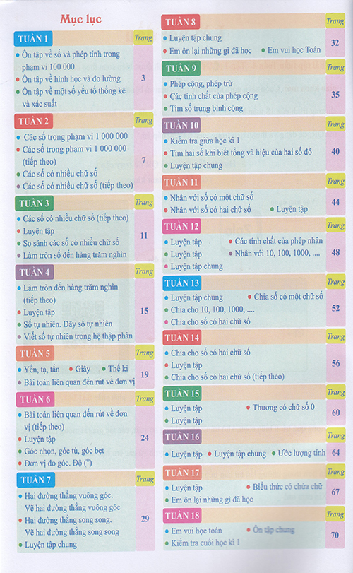 NỘI DUNG Sách - Bài tập tuần Toán 4 tập 1 (Biên soạn theo chương trình sách giáo khoa mới)
