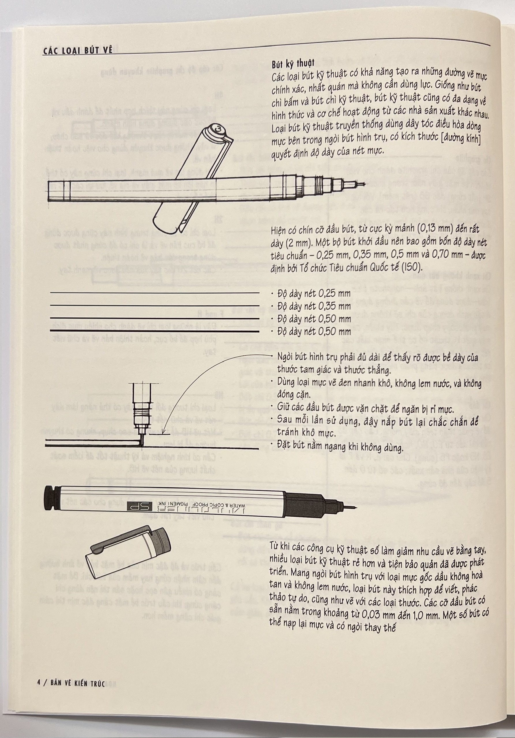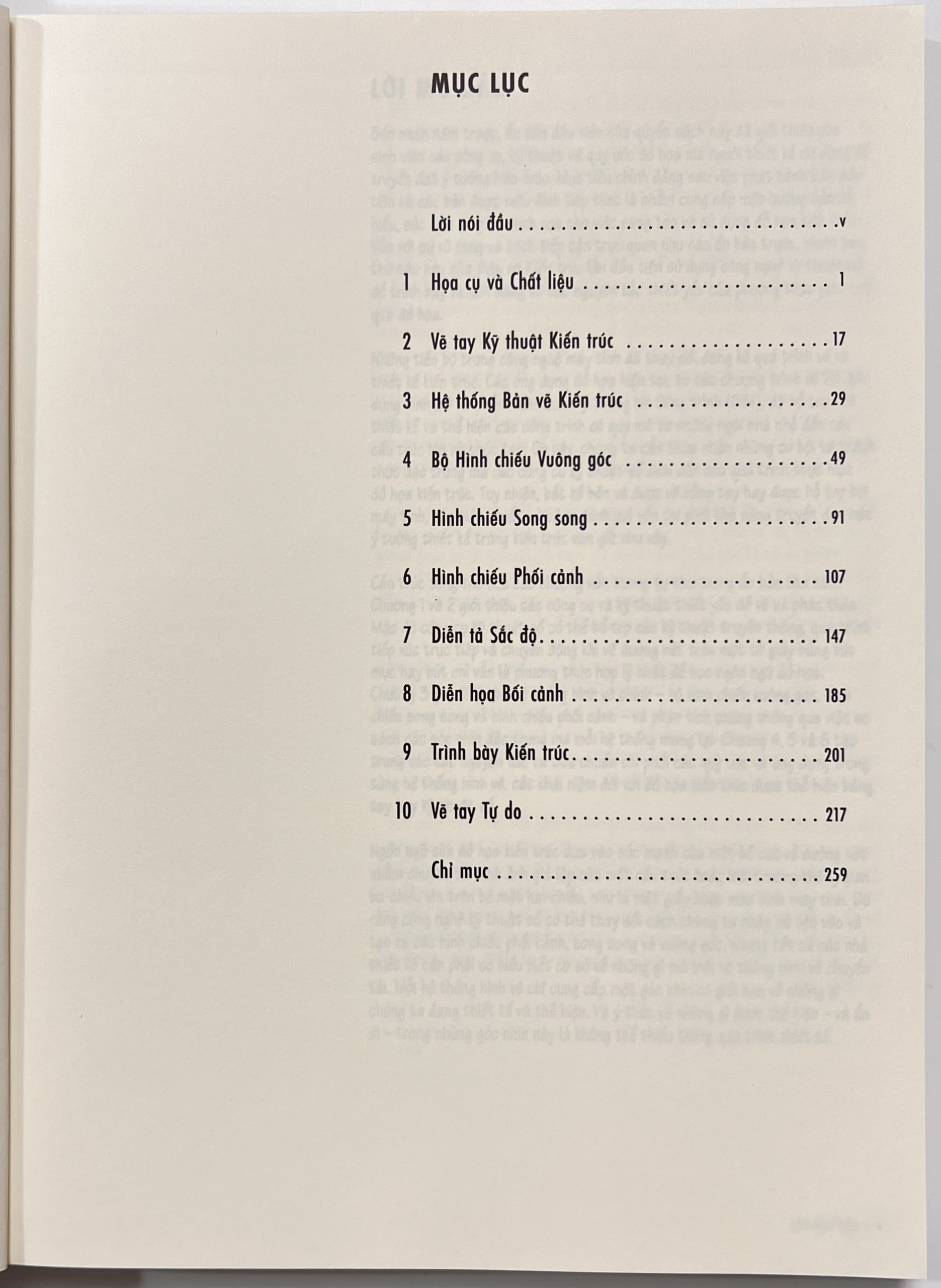 Tựa sách Bản vẽ Kiến trúc cung cấp các công cụ, nguyên tắc, và kỹ thuật vẽ quan trọng mà các nhà thiết kế sử dụng để diễn giải các ý tưởng kiến trúc thành các bản trình bày một cách hiệu quả và trực quan.