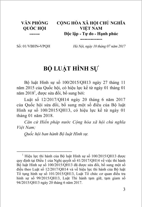 [Bản full - Đọc luật] - Bộ luật hình sự 2015, luật sửa đổi, bổ sung năm 2017 - Văn bản hợp nhất