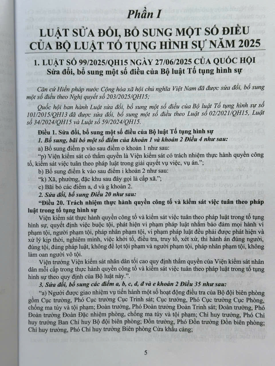 Phần thứ nhất. Luật sửa đổi, bổ sung một số điều của Bộ luật Tố tụng hình sự năm 2025