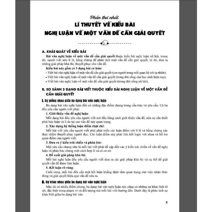 vào lớp 10 THPT sắp tới. Với nội dung được biên soạn theo định hướng phát triển năng lực và phẩm chất của Chương trình GDPT mới, cuốn sách còn có thể giúp các em hệ thống hóa kiến thức các dạng bài nghị luận xã hội, cải thiện khả năng tư duy và lập luận logic.