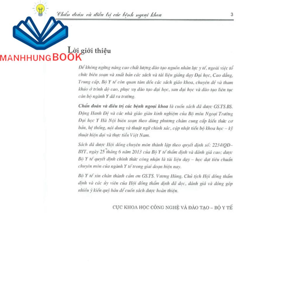 Nội dung: Chẩn đoán và điều trị các bệnh ngoại khoa là cuốn sách đã được Tác giả GS. BS. Đặng Hanh Đệ (chủ biên), cùng 27 tiến sĩ, thạc sĩ, PGS, BS các khoa Phẫu thuật tạo hình- hàm mặt, Khoa phẫu thuật tiêu hóa, khoa chấn thương chỉnh hình, Khoa gây mê hồi sức, Khoa phẫu thuật gan, Khoa phẫu thuật tiết niệu, Khoa phẫu thuật cấp cứu tiêu hóa, khoa phẫu thuật tim mạch và lồng ngực Bệnh BỆNH VIỆN VIỆT ĐỨC lời giới thiệu, cuốn sách Chẩn đoán và ĐT các bệnh ngoại khoa là cuốn sách đã dược GS. BS Đặng Hanh Đệ cùng các nhà giáo giàu kinh nghiệm của bộ môn ngoại Trường Đại học Y Hà Nội biên soạn theo đúng phương châm cung cấp kiến thức cơ bản, hệ thống, nội dung và thuật ngữ chính xác, cập nhật tiến bộ khoa học - kỹ thuật hiện đại của Việt Nam .