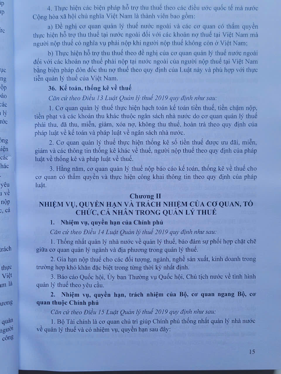 Chương II. NHIỆM VỤ, QUYỀN HẠN VÀ TRÁCH NHIỆM CỦA CƠ QUAN, TỔ CHỨC, CÁ NHÂN TRONG QUẢN LÝ THUẾ