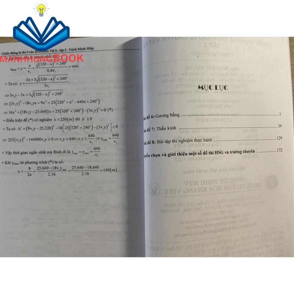 Hàng năm, Sở giáo dục và đào tạo các tỉnh – thành phố đều tổ chức kì thi tuyển sinh vào lớp 10 trường THPT chuyên ở nhiều môn nói chung và môn Vật lí nói riêng. Mặc dù trên thị trường đã có một số tài liệu tham khảo phục vụ cho việc ôn thi vào lớp 10 chuyên lý song để đáp ứng được sự hội tụ đầy đủ các dạng bài tập, bài tập thí nghiệm thực hành, phương pháp giải và hệ thống đề thi của nhiều trường chuyên nổi tiếng trên toàn quốc thì vẫn chưa có. Với mong muốn mang đến cho bạn đọc một bộ sách THI VÀO 10 CHUYÊN LÝ toàn diện, đầy đủ, nhiều dạng bài tập, nhiều đề ôn luyện, đặc biệt để các em học sinh luôn là người chiến thắng trong thi vào 10 chuyên lý, chúng tôi quyết định biên soạn bộ sách “CHIẾN THẮNG KÌ THI 9 VÀO 10 CHUYÊN”. TẬP 2: “Quang học – Bài tập thí nghiệm thực hành – Đề thi” gồm 3 chủ đề và 66 đề thi vào chuyên lý và thi HSG: