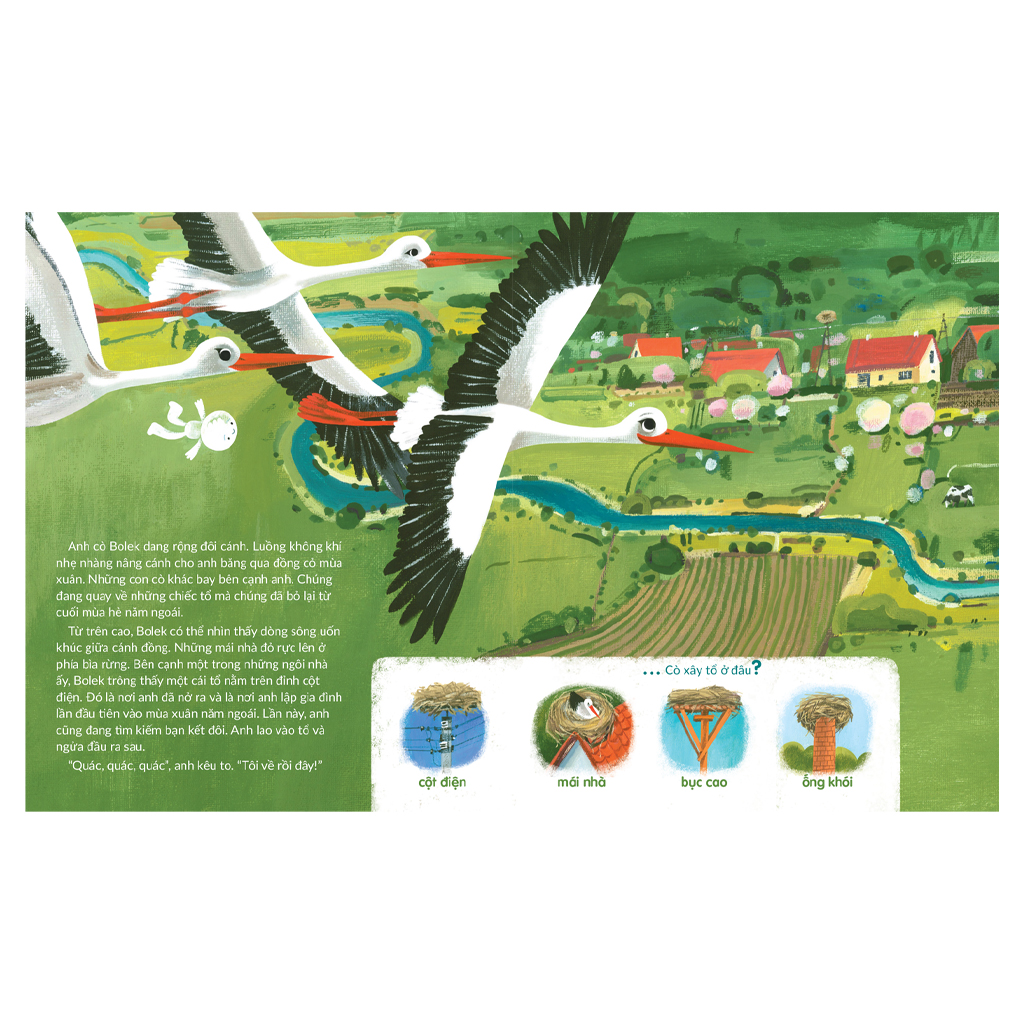 NHÀ CHIM TRÊN ĐỒNG CỎ Nhà Chim Trên Đồng Cỏ dẫn dắt bạn nhỏ khám phá chiếc tổ lơ lửng trên ngọn cột điện của gia đình cò Bolek - nơi có tầm nhìn bao