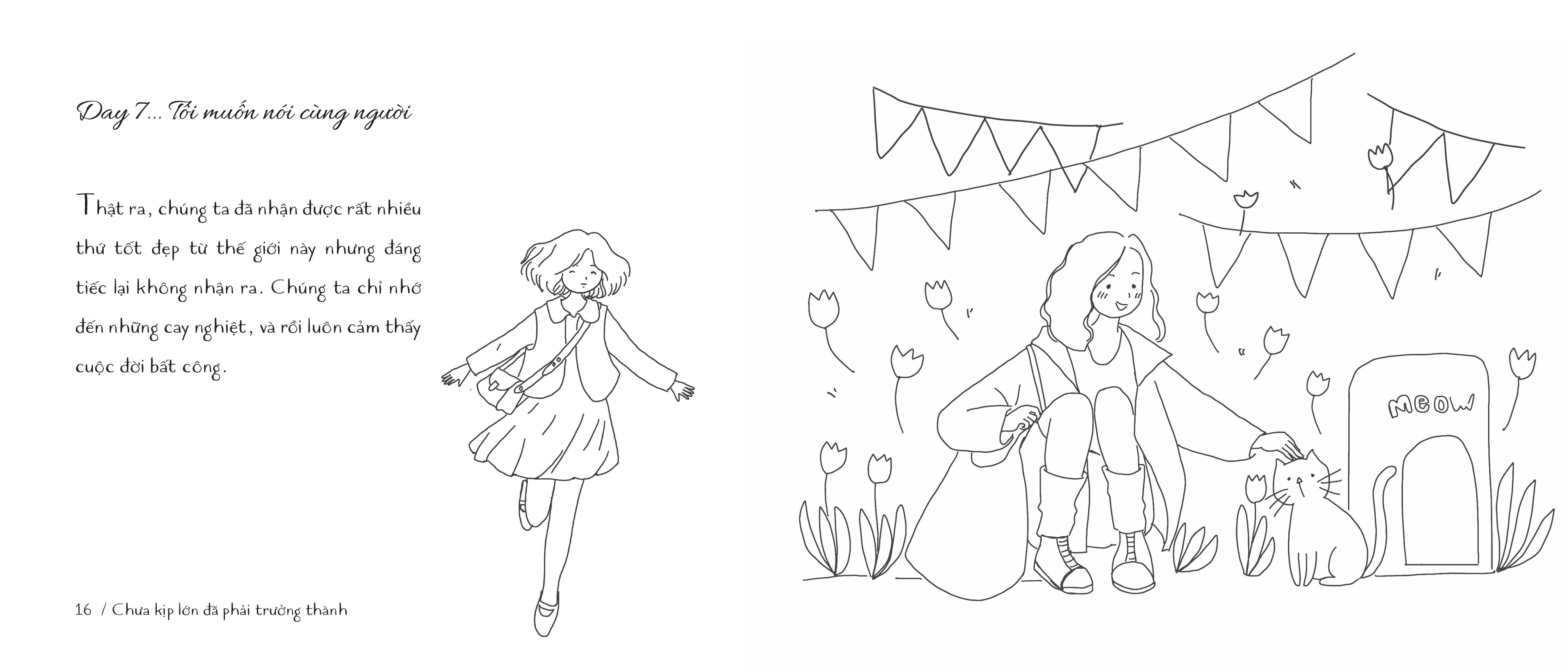 “Chưa kịp lớn đã phải trưởng thành” nay đã có phiên bản tô màu, kết hợp những lời tâm tình thủ thỉ với những bức tranh sinh động, dịu dàng. Cuốn sách như một món quà dành tặng bạn, để bạn tự tạo nên màu sắc tươi sáng tích cực, thỏa sức tô vẽ cảm xúc trên hành trình trưởng thành chênh vênh và ấp ôm bạn cùng đi qua những tháng ngày mỏi mệt.