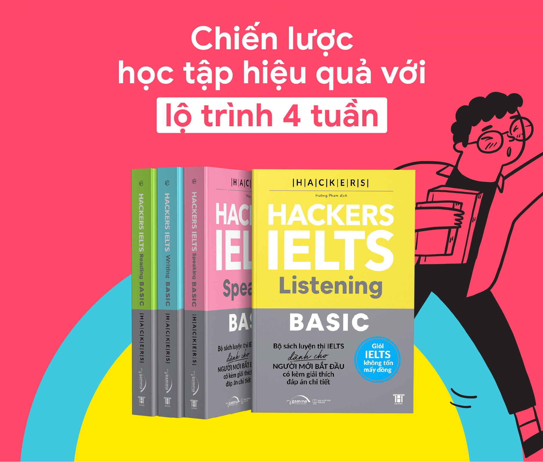 Bộ sách Hackers IELTS Basic gồm bốn kĩ năng: Listening – Reading – Speaking – Writing nhằm giúp người học xây dựng được chiến lược học tập hiệu quả và rèn luyện các kĩ năng từ bước cơ bản nhất. Bộ sách sẽ là công cụ hữu ích giúp người học tiếp cận với IELTS theo cách đơn giản đến không ngờ.